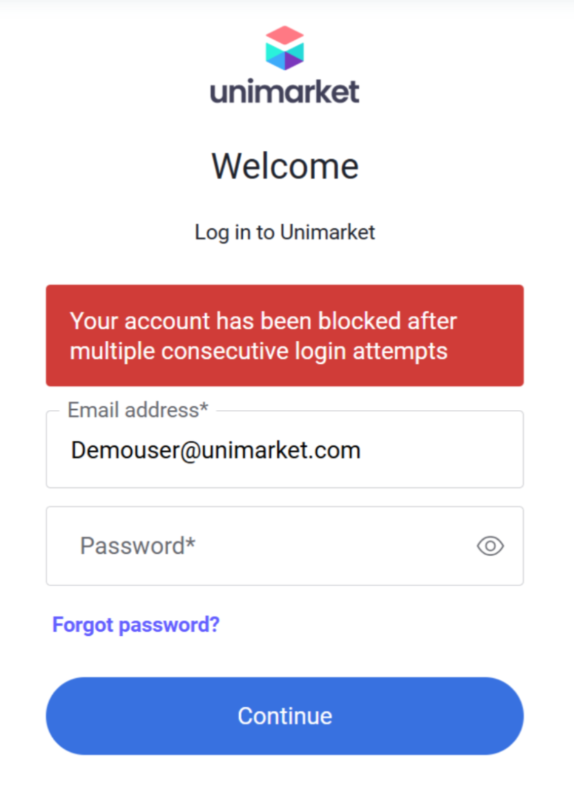 If your Unimarket supplier account becomes locked due to 10 or more incorrect password attempts. You can unlock it yourself by initiating a password reset, or an user Administrator can unlock it on your behalf.