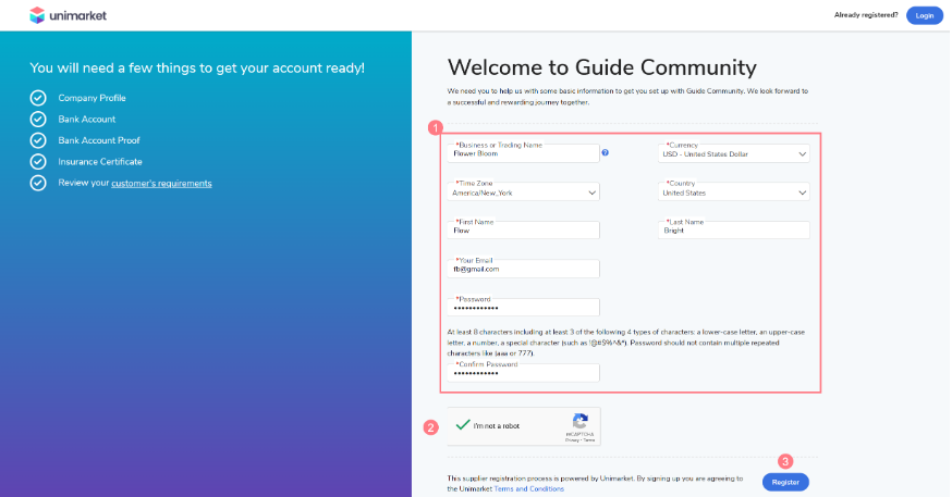 Unimarket is a closed, customer-invitation-based Marketplace. This article provides a step-by-step guide for new suppliers to register, complete their company profile, and establish their presence (or "store") in the Unimarket Supplier Directory for trading with existing customers.