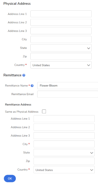 If your remittance address is the same as your physical address, check the Same as Physical Address box.