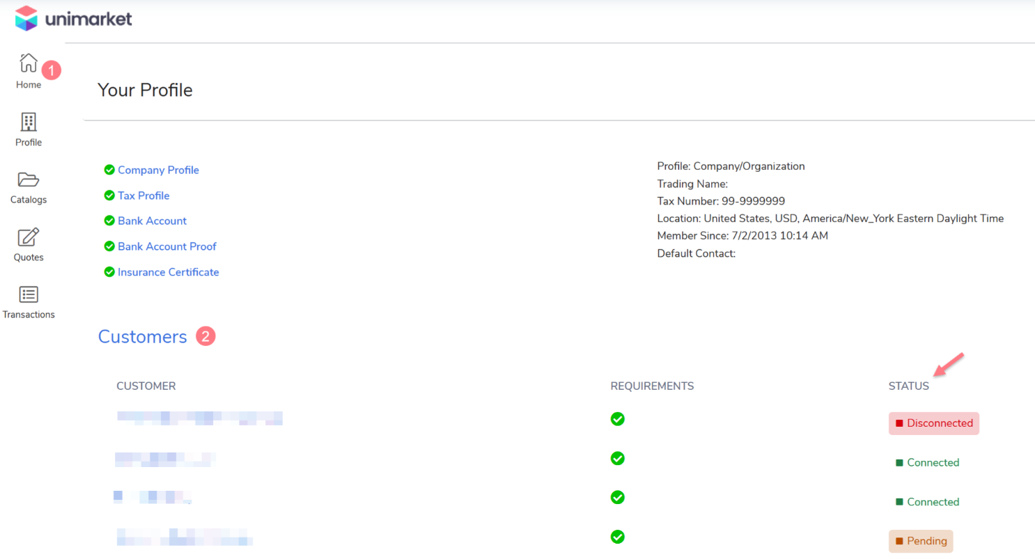 Note: If you already have a company Unimarket profile, view instructions on how to link a new customer to your existing profile. |