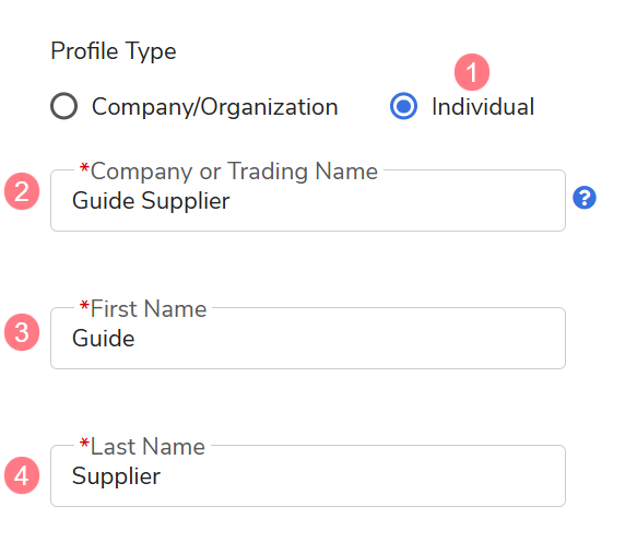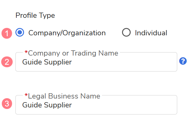 You can classify your profile type as: Company/Organization or Individual. If you choose Company/Organization, complete the following is fields: