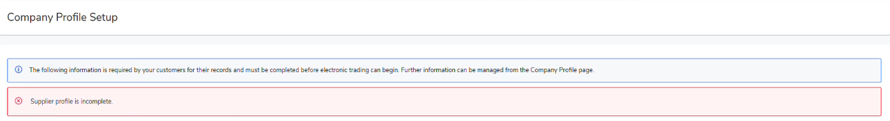 The Supplier Profile is Incomplete error typically appears when, one or more mandatory fields is incomplete.