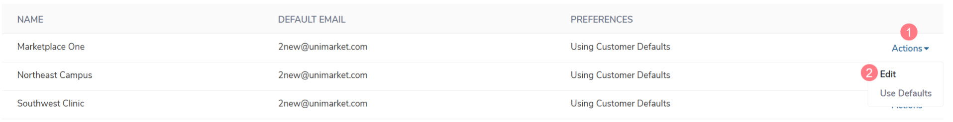 If additional email addresses are shown for linked organization units, select Actions and click Edit to update them.