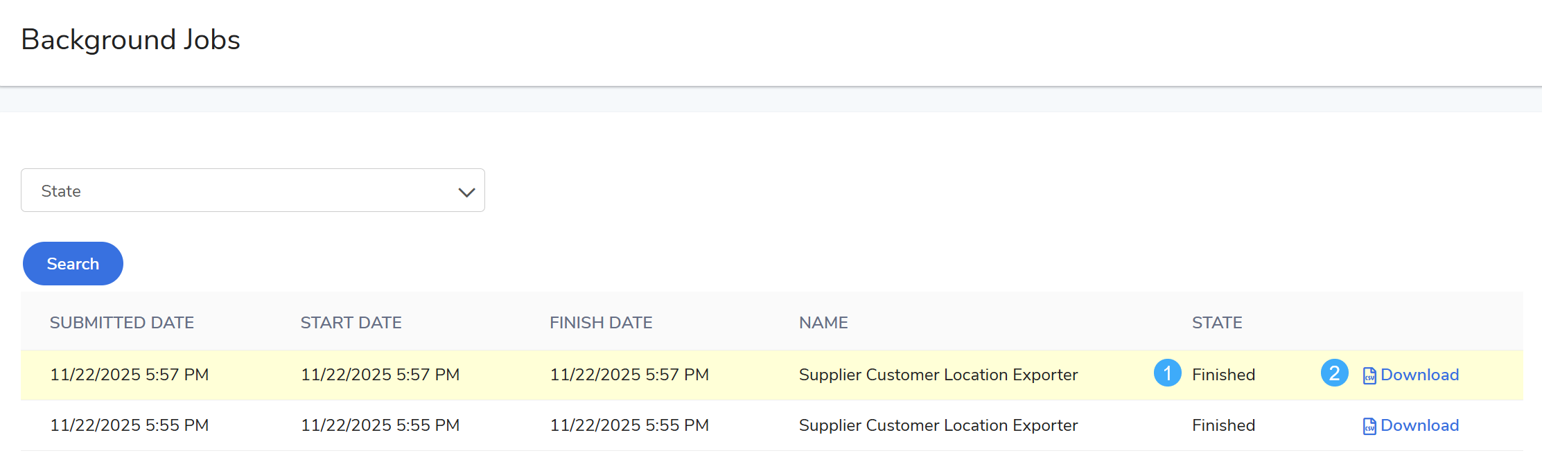 Tip: You can also access this screen by selecting the Task Menu in the upper right corner and clicking Background Jobs.
