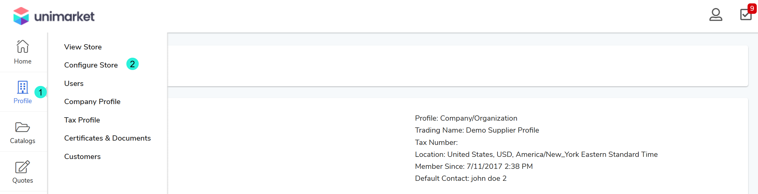 The Unimarket supplier store can be customized and configured to control it's appearance, accepted order types, delivery options, invoicing rules, and integration details; for all connected customers.