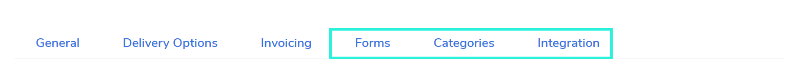 The Configure Store screen will populate, displaying the following tabs for customization: General, Delivery Options, Invoicing, Forms, Categories, and Integration.