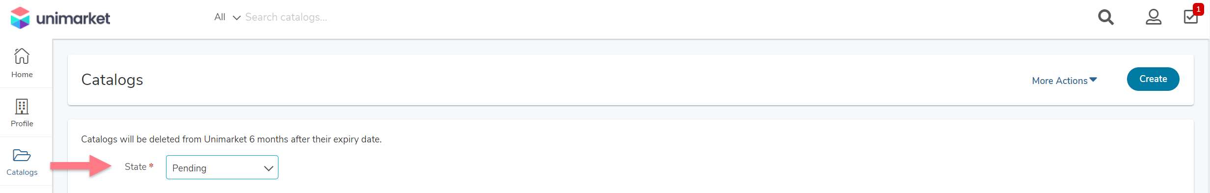 | Pending Catalogs (In review/draft) | 1. Ensure the State filter is set to Pending. 2. Select the desired catalog name. 3. Select More Actions. 4. Click Export Draft Products. |