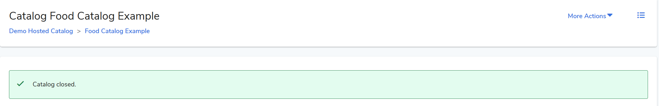 A green notification banner will appear at the top of the screen confirming the catalog has been closed.