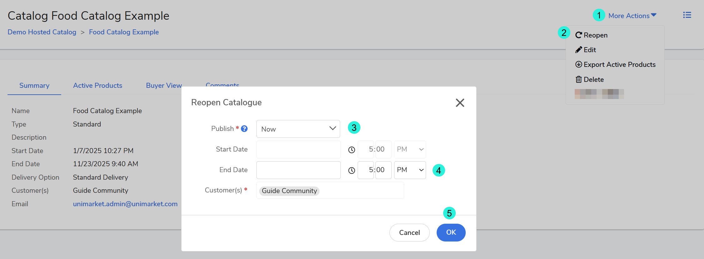 Suppliers can close an open catalog, at any time to remove it from customer view. Closed catalogs can be re-opened later if needed, making them available to customers again.