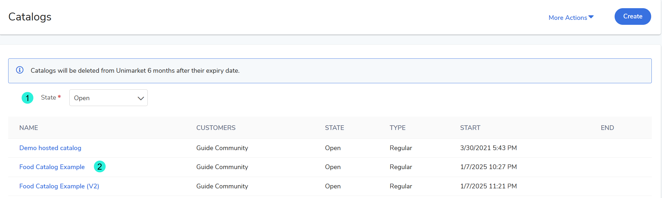 This screen defaults to showing all Open catalogs.