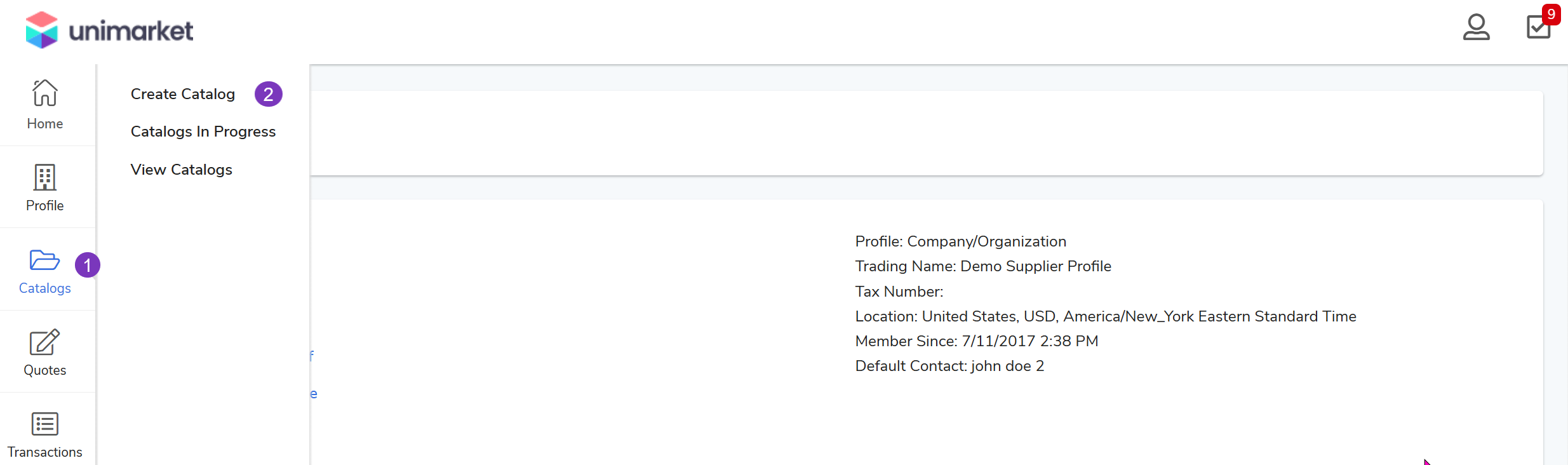 Note: Catalogs not completed in the Catalogs in Progress screen, will be deleted one month after being loaded. For assistance, please contact the Unimarket Support team within your profile.