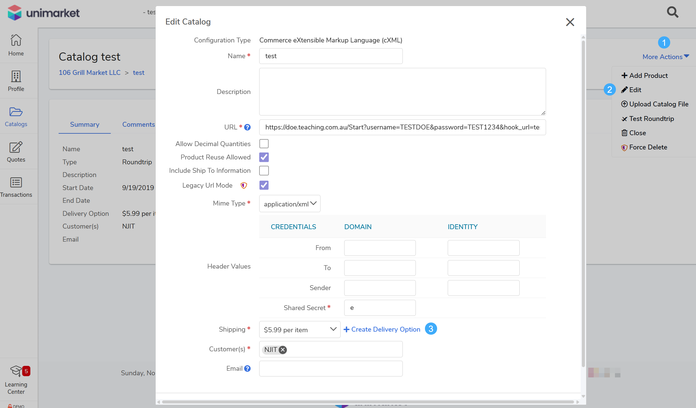 Intent: Create and assign a custom shipping option to a Punchout Catalog.