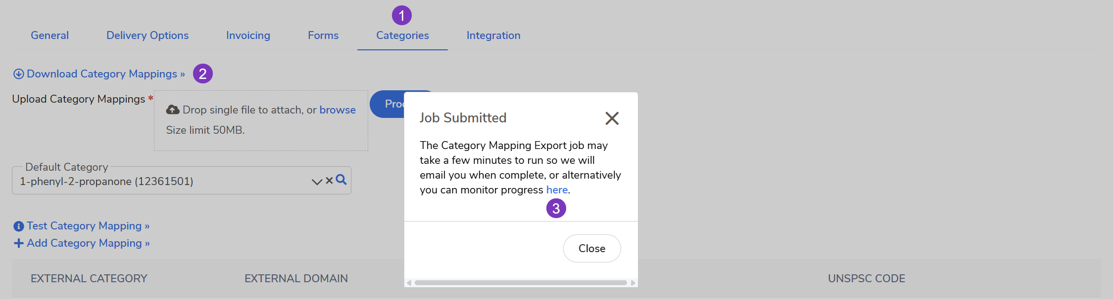 Suppliers have the ability to map their product categories to Unimarket's UNSPSC codes. This is essential for ensuring customers receive consistent category values for reporting. Particularly, when there are variances between UNSPSC versions or when a supplier uses a different external category system.