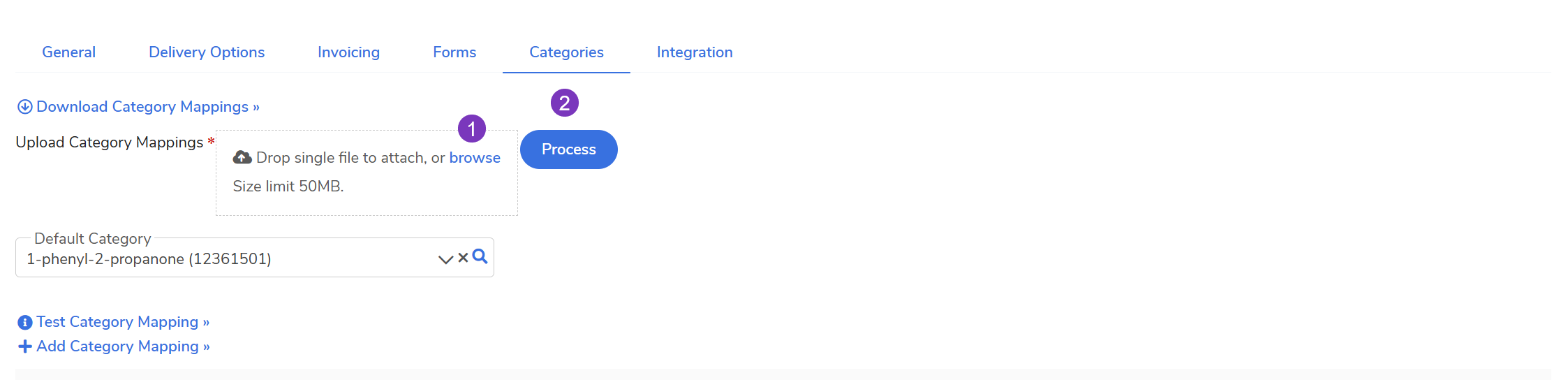 Upload the File: Once the file is complete and saved as CSV format, select Browse in the Upload Category Mappings field.