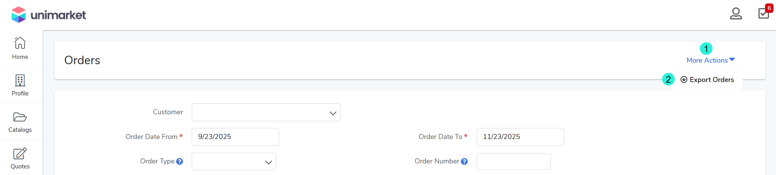 Once a connected customer places an order, the supplier receives an email notification. Orders can be viewed, filtered, and exported in the Unimarket supplier rprofile. Providing a detailed breakdown of line items and invoicing history.