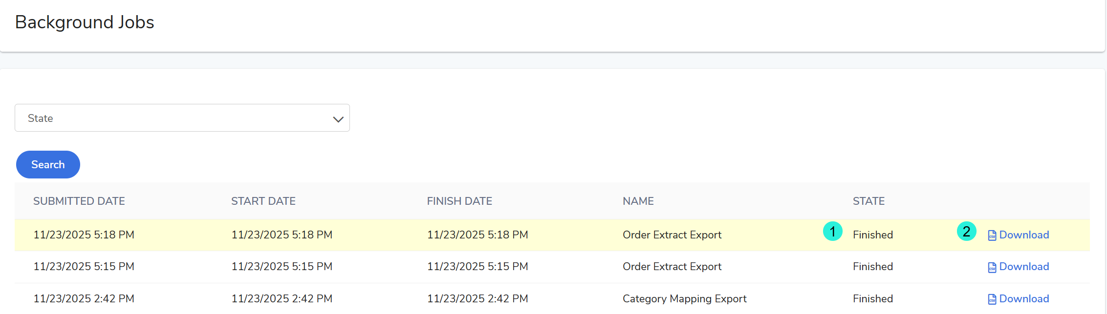 - The Background Jobs screen will populate, click the Download link once the file is in a Finished State.
