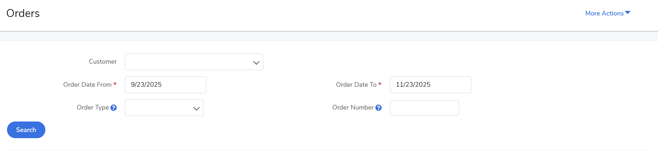 Customer, Order Type, or Order Number: Use these to narrow down the results.