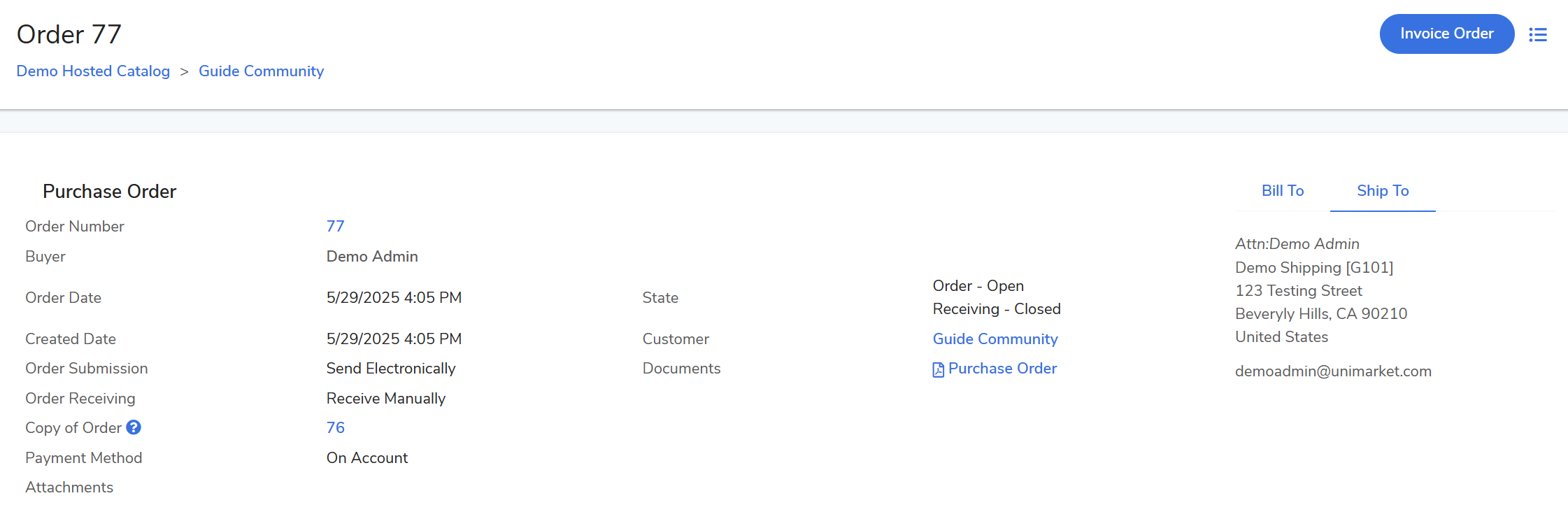 | State | Open means the order can be invoiced, edited, or canceled (if enabled by supplier/customer). Closed means no further actions can be processed. |