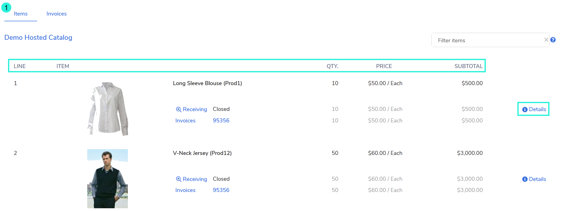 On the Items tab, you can find greater clarity on each product or service ordered: