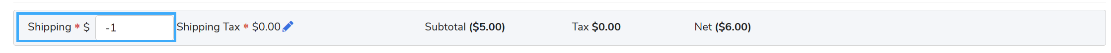 In the Unit Price field, enter a POSITIVE dollar amount (the original price of the item). The Subtotal Amount will now display as a negative number (indicated by the subtotal amount in parenthesis).