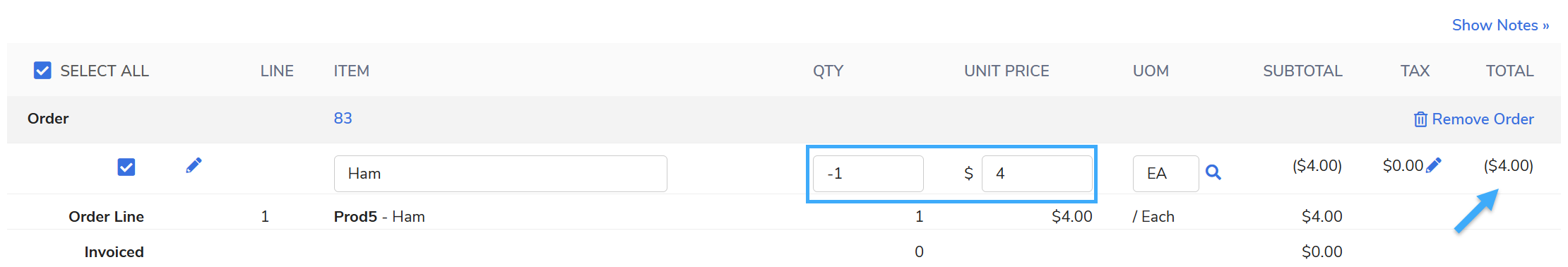 Select Lines and Enter Negative Quantities