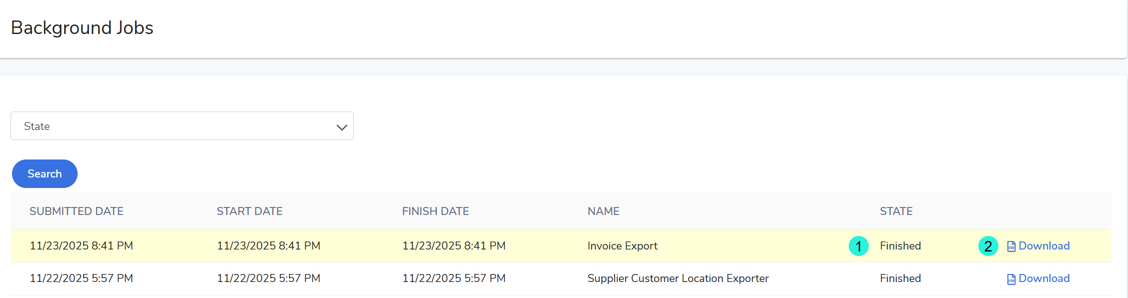 The Background Jobs screen will appear. Select the Download link once the file is in a Finished State.