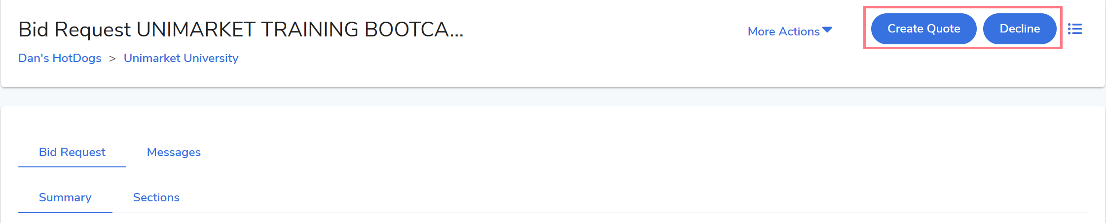 Selecting Create Quote will begin the step-by-step bid response process.