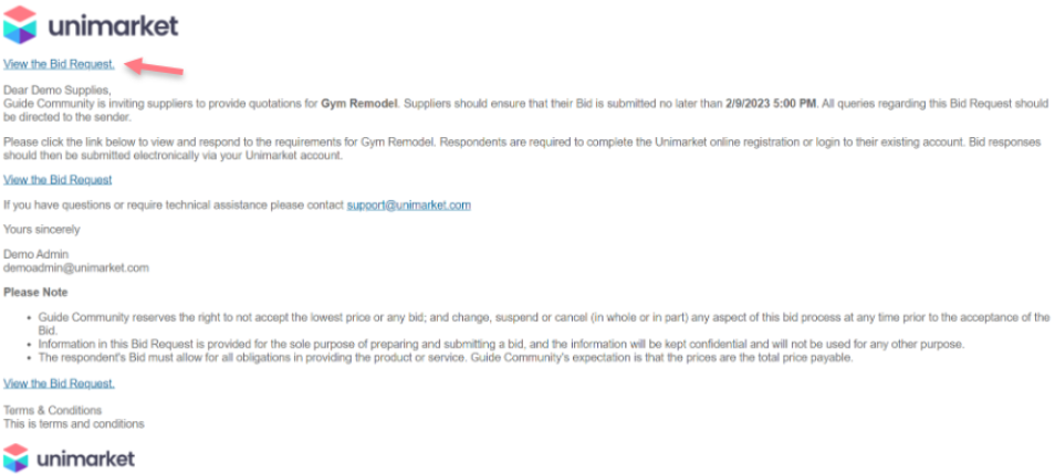 Click the View the Bid Request link provided in the email or public URL.