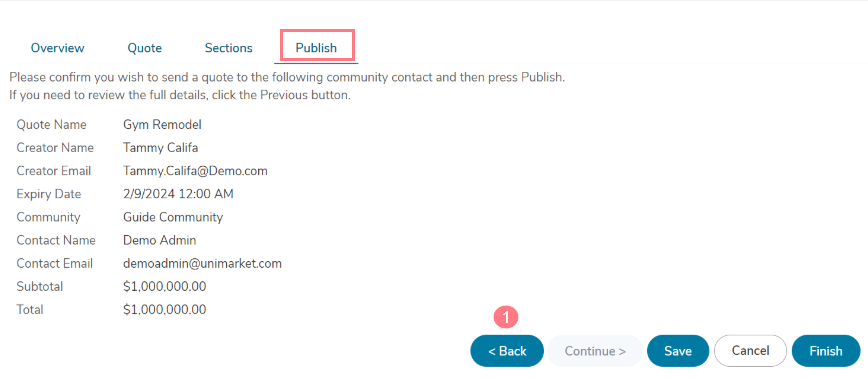 If any data needs to be amended before publishing, click Back or select the relevant tab to make the necessary edits.