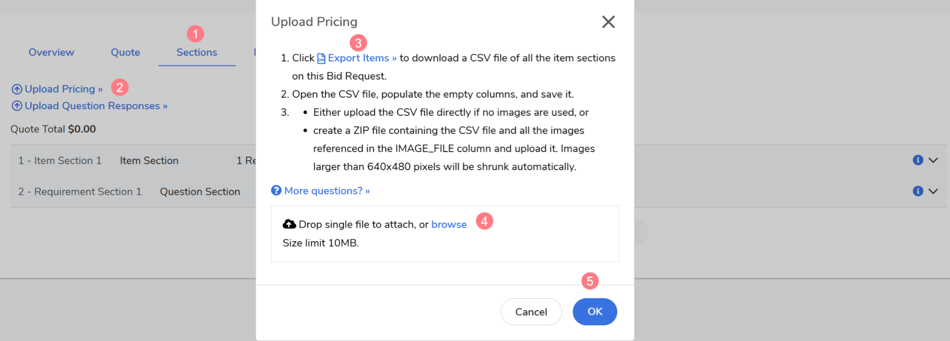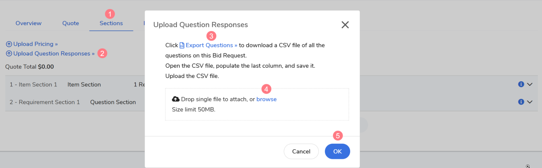 Intent: Upload pricing and/or answers to bid requests in bulk.