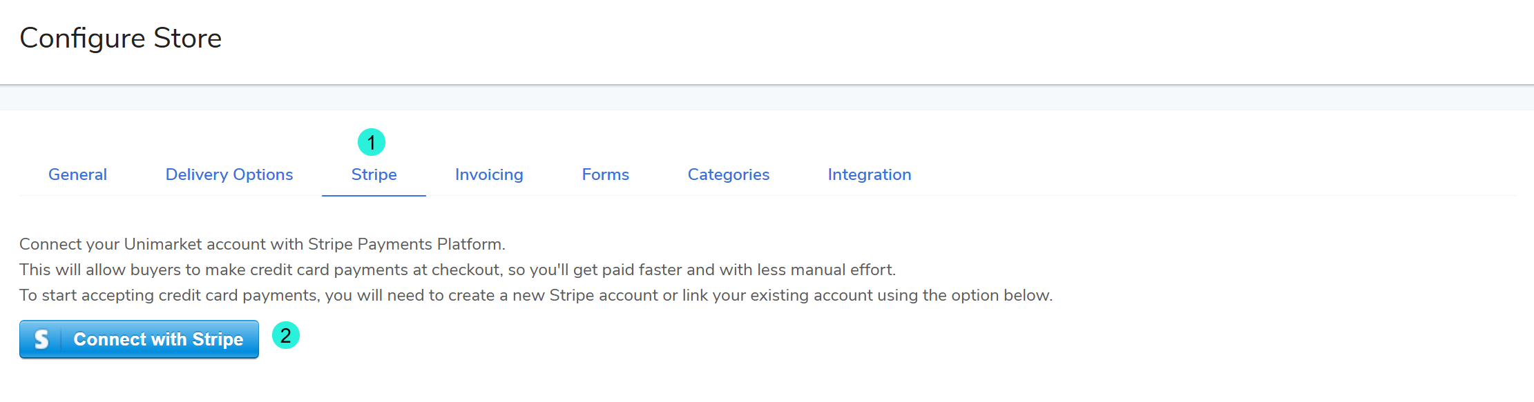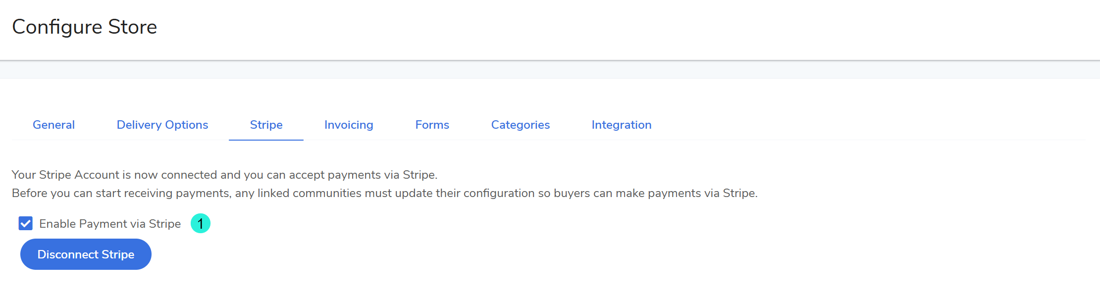 After authorization, you will be taken back to Unimarket to complete the final step: select Enable Payment via Stripe.