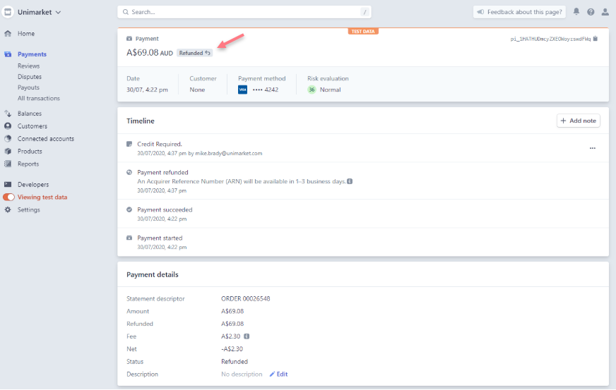 If an order was paid using a Purchasing Card (P-Card) via Unimarket's integrated Stripe payment gateway, any required refund must be processed through your Stripe supplier account. This process ensures the funds are returned directly to the customer's card.