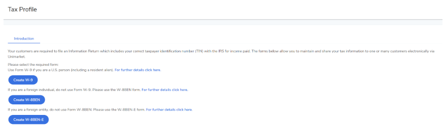 If your customer requires the Tax Profile, you will be taken directly to the Tax Profile page.