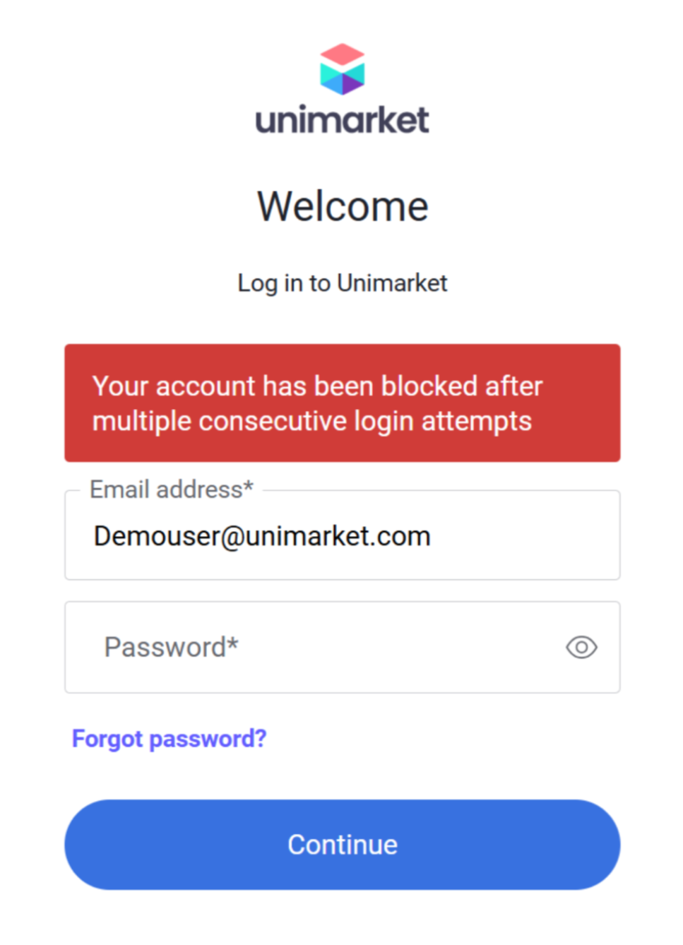 To unlock your account, go to the relevant login page for your zone > select "Forgot Password?" > enter your email address > check the "I'm not a robot" captcha box > click Reset.